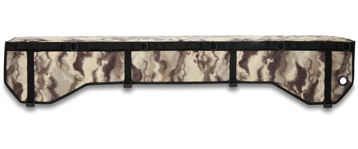 Trailhead commute or gravity-shuttle duty, no bike rack compares to the convenience of a Dakine Pickup Pad. The DLX pad fits modern tailgates with backup cameras. The Large model works best on full-size tailgate designs and has tie-downs for up to seven bikes. The Small fits midsize truck tailgates and has tie-downs for up to five bikes. A built-in security grommet lets you lock it to your truck. We’ve stiffened the ends of the webbing straps for easy installation under the tailgate and added cam-action buckles for quick removal.