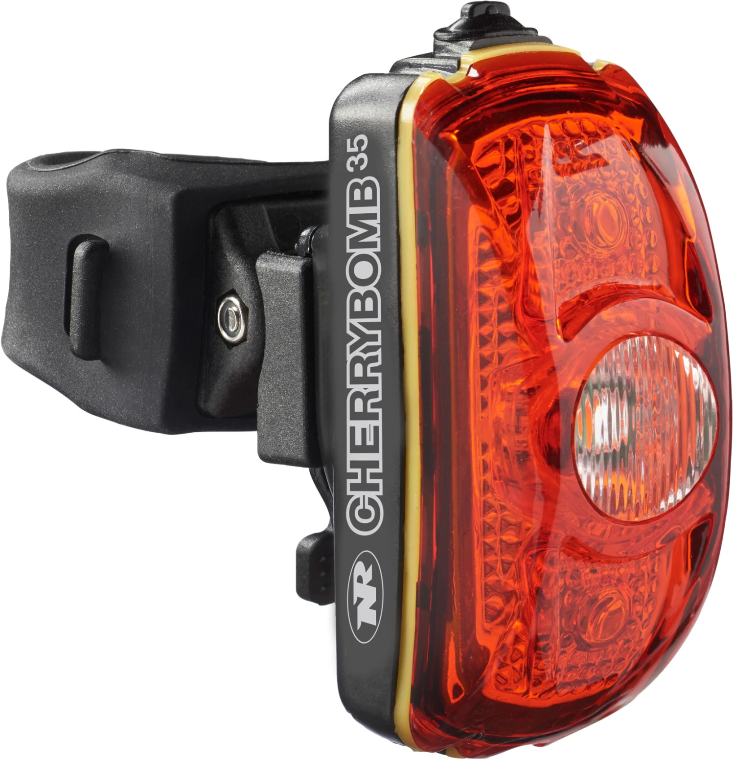 To further rider safety and visibility, the CherryBomb 35 employs a custom made, built in reflector which allows the rider to be night time visible even when the taillight is in the off position. Clip and bike mounts are included, for flexible mounting options.