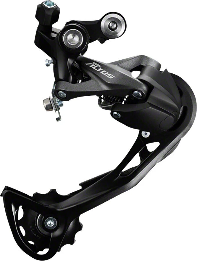 The Shimano Altus rear derailleur brings Shadow technology and wide-range capability to 9-speed drivetrains