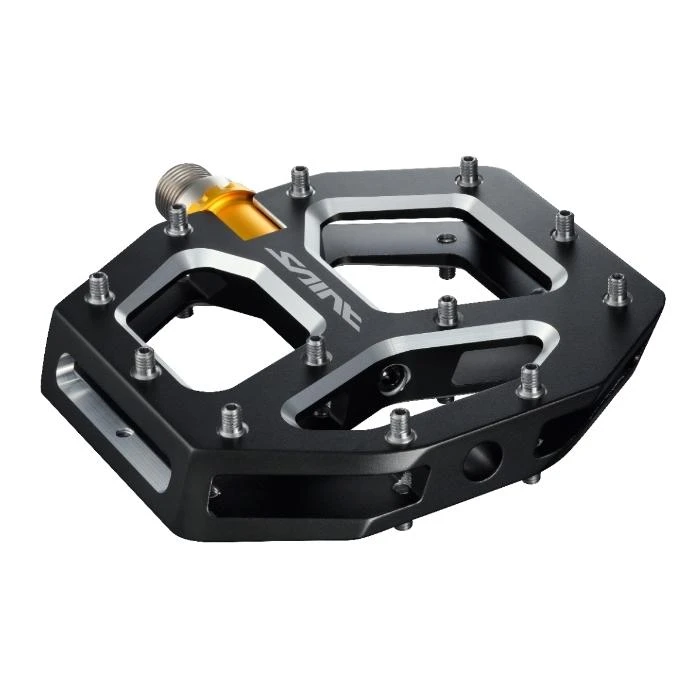 Shimano’s Saint Flat Pedals are high-end power platforms with superior grip, beefy durability, and race-ready customizabilty.