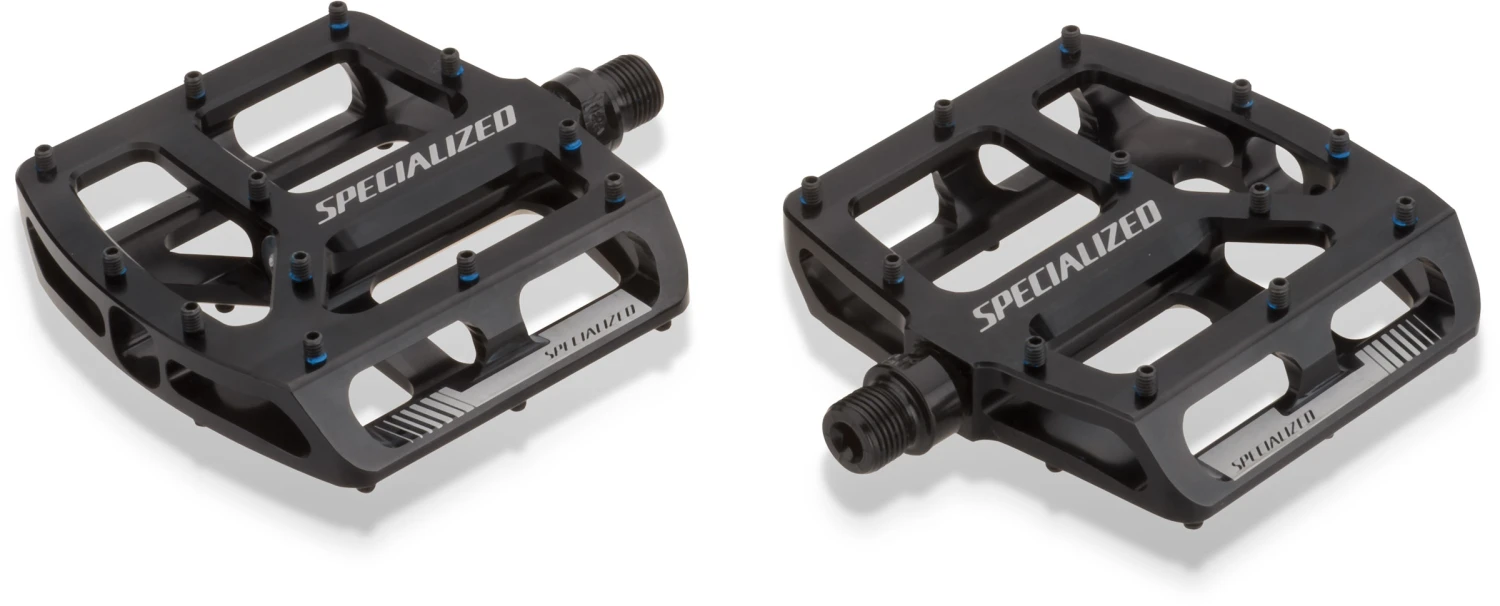 With loads of traction, sure-footedness, and premium control, Specialized’s Bennies Platform Pedals are ready for everything from freeride madness to trail riding. They’re made of a rugged, yet lightweight concave aluminum body with 24 replaceable pins for maximum grip. Durable chromoly axles and sealed cartridge bearings mean they’re built to last.