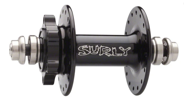 Surly’s Ultra New Disc Front Hub is a gorgeous hunk of aluminum that boasts reliable sealed bearings and a 6-bolt disc attachment. The forged chromoly axle is flex-free for steering precision, long-lasting durability and simple quick-release compatibility.