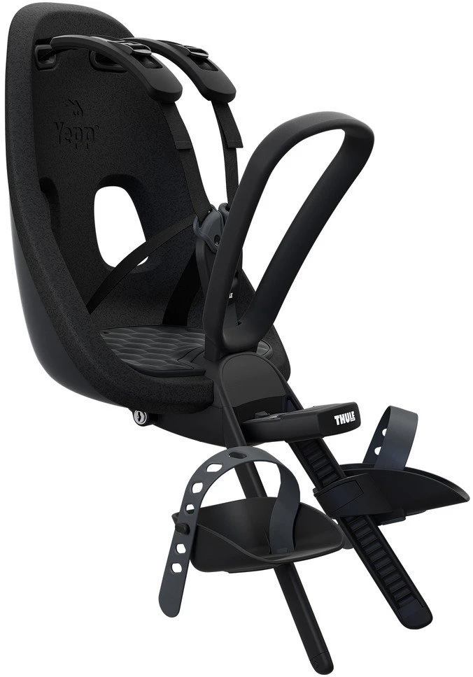 Lightweight and stylish front-mounted child bike seat with smart design for rides around town.