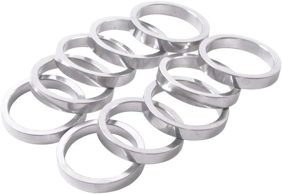 Aluminum headset stack spacers precision cut to ensure proper headset function.