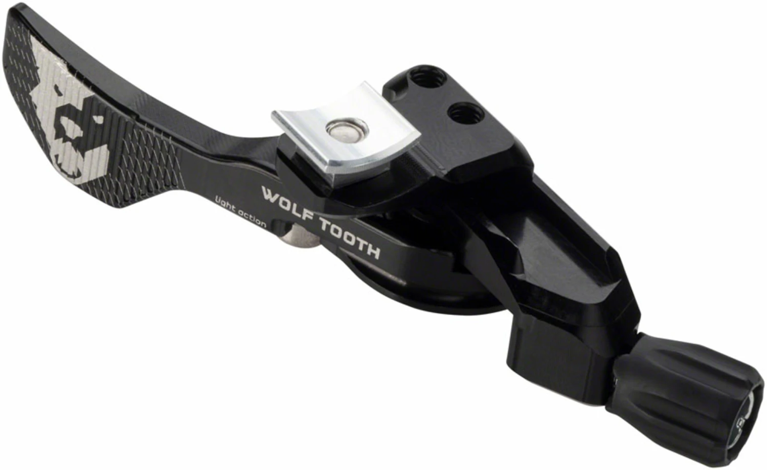 Wolf Tooth ReMote Light Action has a longer lever arm than the standard ReMote and is optimal for dropper posts with a harder pull or for riders that just prefer a really light actuation feel. It reduces the force to actuate a dropper by nearly a third of the standard ReMote. Based on rider feedback and tailored to work with some posts’ stiffer internal springs, the ReMote Light Action is also the choice of those with thumb injuries or reduced hand strength.