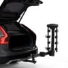 Two plus two equals more: More bikes, more adventure, and more fun. Adding on the StageTwo +2 lets you double your capacity to four bikes, each carried securely and in style. The stadium seating architecture increases ground clearance on rutted trails or steep driveways and its offset tray design further minimizes bike to bike interference and maximizes functionality. The forward-facing remote tilt lever means fast access to the trunk area and integrated locking cables combine with your own lock to provide serious security.