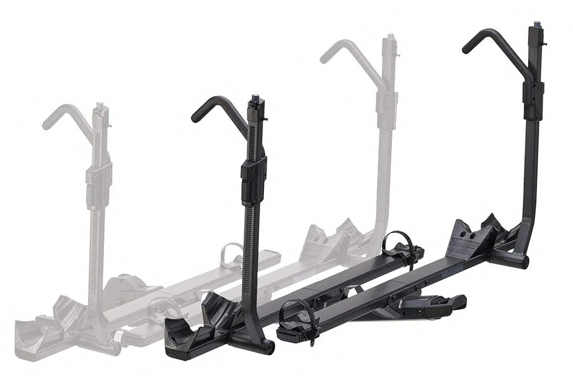 – Attaches to the 2” StageTwo to carry two additional bikes?Tiered and adjustable bike trays minimize bike to bike interference and maximize ground clearance